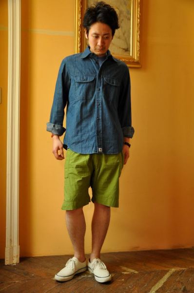 デニムシャツは軽やかにショートパンツで。