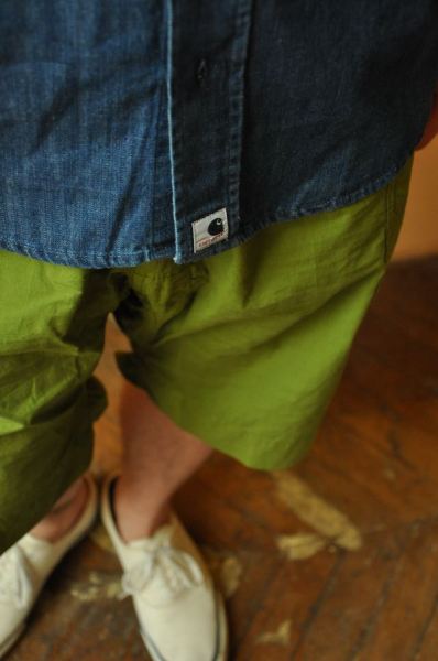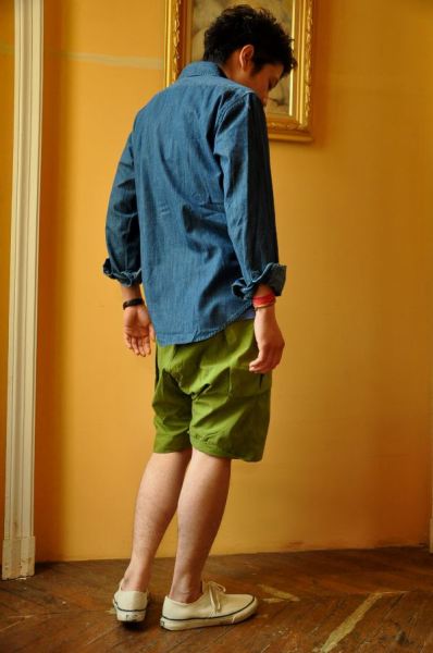 堅くならないミリタリー系のショートパンツ。色味はあえて明るく!