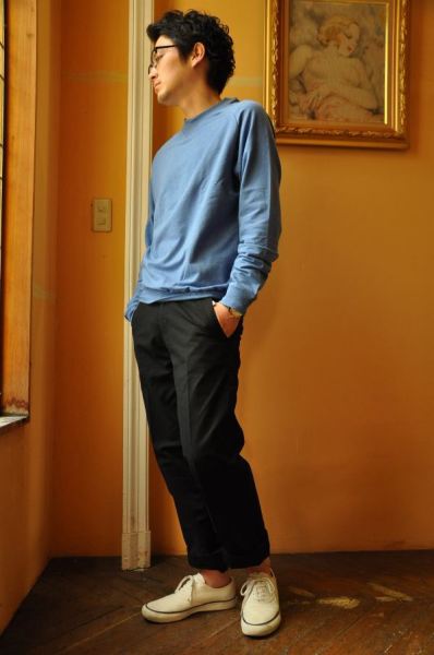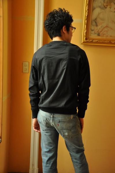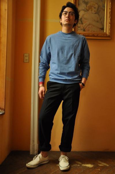 ナイスカラーのスウェット。黒とのメリハリを付けてみる。