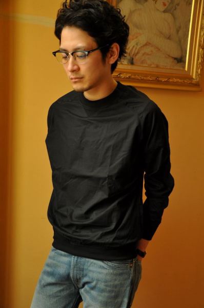 薄いシャツ地のプルオーバー。どことなくドレッシー。