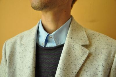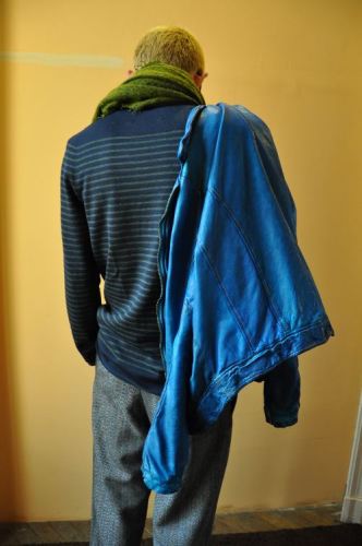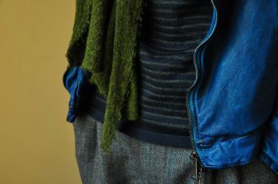 そして秋冬らしいダークな色味の中に、ジャケットとシャツで冷たい色を使ってみました。