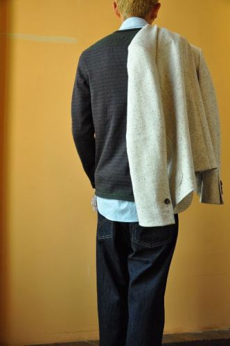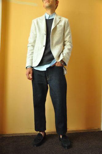 ここで、あえて太めのデニムを短めに穿く事でいつもと変わったバランスになると思います。
